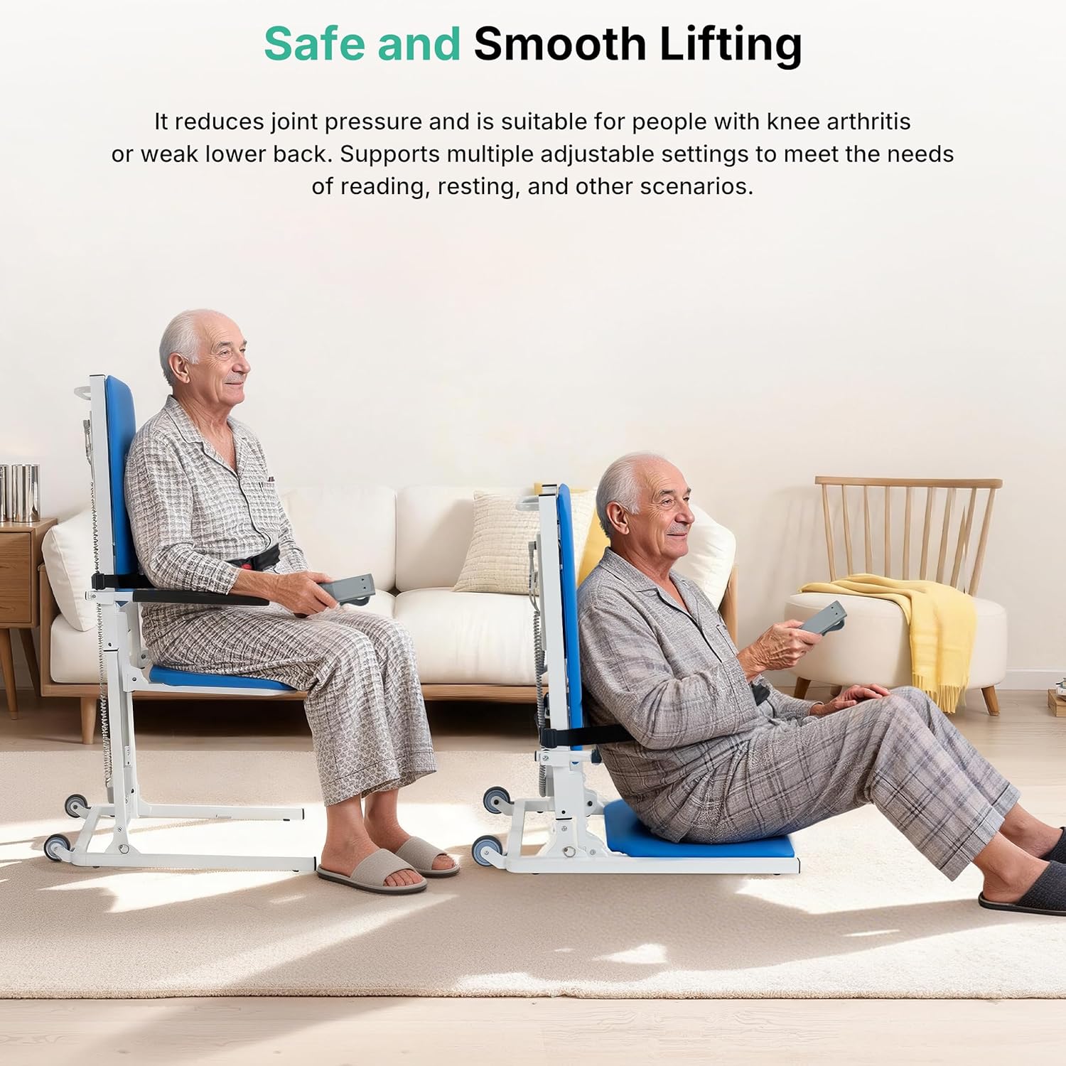 - 【One-touch Remote Control Operation】Equipped with a wired lift controller for height adjustment. Simply press the button, and the motor will quietly and smoothly adjust the seat height.No complicated app setup required. Convenient, safe, and highly efficient. Ideal for both elderly users and their caregivers.